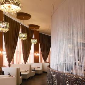 - Пошив штор для ресторана из материалов со специальной пропиткой поможет тратить меньше времени и денег на уход за портьерами – наши специалисты подберут ткани, которые практически не впитывают запахи и не требуют частой чистки.
